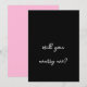 få ett speciellt giftermål att frieri med det här snyggt-kortet som innehåller ditt frieri budskap "Vill du gifta dig med mig?". Den ena sidan av kortet är i contemporaryn "svartvitt" medan den andra sidan är i en romantisk rosa där du kan öppna ditt personliga meddelande.