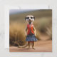 Bilden visar en tonårsmangust i en denimkjol och röd jacka som sticker ut från flocken.