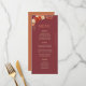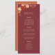 Chic orange Terracotta blommigt bröllop Menu. Förbättra din fallbröllopsmatta med den här chicen på hösten bröllop-menyn, med elegantens orange och terracotta-blommigtar. De varma, rustiska tonerna skapar ett sofistikerat och inbjudande utseende, perfekt för säsong firande. Snyggt och funktion. Den här menyn presenter på ett vackert sätt din noggrant jämkade måltid och tillför en charm till din mottagning.