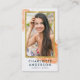 Chic Orange Vattenfärgsfoto Faux Guld Headshot Pho Visitkort