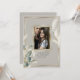Lägg till foto i den här vackra eleganten pampas-gräs och smokey teal anthurium-blommigt Spara datuminbjudan. En svampbeige texturerad bakgrund i kombination med mousserande guld-accenter gör att en chic läggs till den luddiga pampas-gräs fronds och teal blue anthurium blommor och löv som omger fotot på ett vackert sätt. Detta är en del av en bröllop-stationär samling med matchande tillbehör till bröllop. Originalteckningar av ©WhimsicalArtwork™ skapat särskilt för BarefootBride™