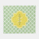 Chic Pastel Grönt Quatrefoil Gult Namn Monogram Fleecefilt