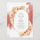 Bekvämt för gästerna med den här inbjudan från elegant bröllop som innehåller mycket vattentät blommigt inslag som omger dina bröllop-detaljer på ovala ram och delikat mjuk rost röd orange vattenfärgsfärg som faller bakom. Blommor, löv och pampasgräs i en vacker blandning av persikor, orange, rosa, kräm och champagnenyger. Förmåga att byta "tillsammans med sina föräldrar" till "tillsammans med sina familjer", "tillsammans med underbar glädje" eller "tillsammans med underbart nöje". Bakåt med samma vattenfärgsfläckar framifrån. OBS! OM DU FÖREGÅR DENNA INBJUDAN MED BAKSIDAN I WHITE, kan du göra den här ändringen genom att följa följande enkla steg: klicka på den blå "Redigera med Design Verktyg"-knappen som finns i slutet av malltextrutorna. På baksidan av lagrar lägger du sedan till en kvadrat från "inslag" på menyn till lämnad. Dra de fyrkantiga hörnen med musen och gör att verkligen täcker hela ryggen. Ändra sedan kvadratens färg till vitt på menyn till högerna. Klicka slutligen på "klar" i det övre hörnet. Det här gör att din inbjudan är vit. En del av vår insamling av ’Persikoprodukter - Delight and Rust Orange’ med en mängd olika samordningsprodukter tillgängliga. Besök hela samlingen på: https://www.zazzle.com/collections/peach_floral_delight_and_rust_orange-119930026374948611