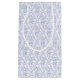 En chic Small Gift Bag, med en mönster av ljusblå periwinkle-blommor, inom en rombform på en vit bakgrund. En del av "Periwinkle Patch"-samlingen Posh och Painterly kan enkelt justeras till mönster så att det passar alla "Gift Bag".
