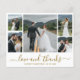 Modern, Elegant Hansdwriter Bröllop 5 Photo Collage Afforable Tack Flyer i Guld och White. Minimalistisk, bröllop-kortmall av snyggt med fem (5) rasterfotosamlingar på framsidan och ett calligrafskript av typen "Kärlek och tack" i ett handskrivet teckensnitt i svan. Anpassa med ditt namn och tack för meddelandet. Om du behöver hjälp eller matcha objekt kontaktar du designern!
