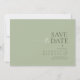 Det här moderna vågrät "Spara datum"-kortet, som visas här i grönten Sage, har en mall som gör det enkelt att lägga till egna data om foto- och personlig-händelser. Som en del av en svit i chic bröllop med en varm naturinspirerad palett i färg och minimalistisk design, har den ett tidlöst och sofistikerat utseende som kommer att göra din speciella dag oförglömlig. Sök i ID1046 om du vill se alla produkter i den här bröllop-sviten.