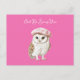 Chic Pink Beret Brown White Owl Be Seeing You Vykort