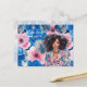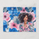 Chic Pink Blue Summer Floral Black Girl Vykort