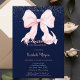 Chic Pink Bow Confetti Navy Blue Quinceañera Inbjudningar