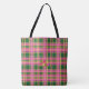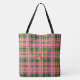 Chic Pink & Green Plaid Tote Bag with Monogram Tygkasse