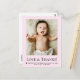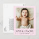 Celebrate your new arrival with this sweet pink newborn thank-you postcard. Featuring a full baby photo, “Love & Thanks” typography, birth details, and space for a heartfelt message, it’s a perfect way to thank loved ones for their gifts, kindness, and support. Soft pastel pink and clean serif text make it ideal for baby girls, birth announcements, and modern minimalist keepsake stationery.