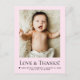 Chic Pink Newborn Photo Love & Thanks Birth Stats Vykort