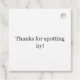 Add a charming and playful touch to your party favors with these adorable Dalmatian-themed tags featuring the fun message “Thanks for spotting by!” Perfect for puppy-themed birthdays, dog-lover parties, baby showers, classroom events, kids’ celebrations, or modern black-and-white party décor, these tags bring an instant smile to every guest. The bold Dalmatian spot pattern paired with cute typography creates a stylish, cohesive look that elevates treat bags, gift boxes, party favors, and take-home goodies. Printed on high-quality cardstock, these tags make your party feel polished, thoughtful, and delightfully spot-on.