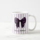 Add a touch of sophisticated flair to your daily routine with this stunning mug. A richly detailed, deep purple satin bow is the focal point, set against a charming pattern of pastel purple and white vertical stripes. Your name is beautifully inscribed beneath the bow in a graceful script, making it uniquely yours. This design is ideal for those who love classic elegance with a modern twist, bringing a sense of refined beauty to your kitchen or office space.