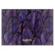 Modern monogrammed name cutting board with a chic purple gold feathers background. Personalize with name and initial.