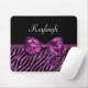 Din tonårs- flicka ska känselförnimmelse som flickaktigt fördjupas i lyx med denna chic märkes- lila och svart glitterzebra tryckmousepad med ett sequingnistraband som binds in i en luxe pilbåge. Personifiera denna glitz och glam djura tryckmodedesign, genom att tillfoga henne som är känd. Den utskrivavna lägenheten avbildar, inte faktiskt glitter eller bandet.