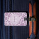 Chic purpurfärgat girafftryck med monogramen och bagagebricka