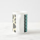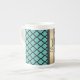 På den här snyggten är mugg en elegant quatrefoil mönster på en turkospaus med ett shimmery guld-band där det kan vara personlig, då är det en exotisk giraffutformning som skapar trendigets chic-vibes.