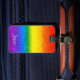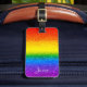 Resa med den här märkrn för chicens bagagepåse. Konstruktionen med glam regnbåge stripe faux glitter omfattar skuggor av rött, orange, gult, grönt, blått och lila med ditt namn för att anpassa sig till vitt skript. Baksidan av påsens märkre är svart med dina kontaktuppgifter i vitt. Det var bara för dig av Extreme Tees!