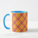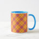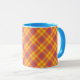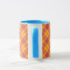 En chic vit keramisk kaffe Mugg, med ett blått lock och handtag och en belagd mönster i ljusröd, Gult och blå. En del av Posh & Painterly 'Rangoli'-samlingen, detta djärva mönster i sidled kan justeras så att det passar vilken kaffegrupp som helst Mugg.