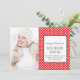 Elegant, chic studenten-ceremonin i inbjudan. Modern, enkel, vit polka dots mot röd bakgrund.