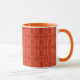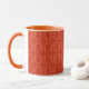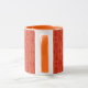 En chic Vita kaffet Mugg med ett Orange läppar och handtag och ett ömtåligt, fuktig mönster med vallmokonturer i Orange på en popperröd bakgrund. Del av insamlingen "Poppy Fält".