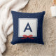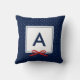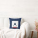 Chicens monogramkudde med en blå kantlinje med ett rött band mot en blå och vit polkudde mönster. Det ger underbarare gåvor till familj och vänner eller till dig själv för att dekorera ditt hem eller sovrum.