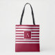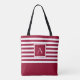 Fantastiskt! Den här chicen, den röda och vita rand brev-monogramtot är perfekt för allt - ta den till stranden, en picknick, en BBQ, shoppa, på semester, ut på båten och så mycket mer - som vi sa, allt, och det är därför du användor den hela tiden! Det skarpa röda och vita rand-tecknet ovanför ett rött färg-block på grund, och det första monogrammet visas mitt i rand i ett vackert vitt serif-teckensnitt på den röda kvadraten med vit kant. Modern, tidlös, chic och elegant!