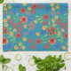 Chic Retro Blommigt Miniprint on Teal Kitchen Towe Kökshandduk