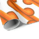 Contemporary modern klassisk returförpackning papper med vit, ljus och mörk orange och abstrakt för mörk brunt färgad, vågar mönster. Tillgänglig på produkter som omslagspapper och vävnadspapper, returetiketter, märkre för gåvor, påsar och favärden, klistermärken och rosett band.