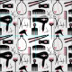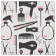 Hårstylisterväv i en chic med hårsalon verktyg i svart, rosa och vitt med söta små hjärtan.