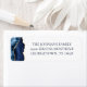 Elegant marinblått och guld agate dekorerar sidan av den moderna returadressetiketten. Gorgligt marmorerat blått med guld gräns bredvid ditt namn och adress.