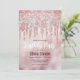 Chic ro och guld födelsedagsfest inbjudan i alla åldrar med coola glitter och rhinestoner som droppformar. För att göra det speciellt i extra kommer ni att anpassa det med er egen information med vackert monogram typsnitt. OBSERVERA: Det här är platt tryckt grafik - ingen riktig glitter, juveler eller upphöjda delar.