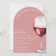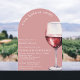 Chic Ro Vin Vino före Vows Arch Inbjudningskort för möhippan - Planering av en möhippa med temat vin eller vin som smakar brunch med briden som ska vara? Denna elegant och minsta ljusbågformade möhippa inbjudan har ett enda vin-glas med rött vin på en antik ro, rosa-bakgrund. Vitt skript och blocktypsnitt ger en feminin och romantisk känsla. Anpassa den redigerbara inbjudningskort för möhippan-mallen med din egen händelseinformation. Finns i tryckt och digital form.