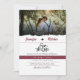 Eleganta blommiga röda, rubin, korall, vinröda och vinbärsröda tema-inbjudningar, Ladda upp dina foton. Skickar dig ett kort för att spara datumet med denna eleganta falska typografi på en vit och svart minimalistisk bakgrundsfoto. Denna högkvalitativa och moderna design är lätt att anpassa för att matcha färgerna, stilarna och temat för din bröllops- eller förlovelseceremoni. Designen har också en lättanvänd typografilayout.