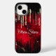 Chic rödsvarta droppar glitter monogram Iphone case. Vacker, modern och coola täckning för den trendviga och konsthundande höftledaren. Denna sofistikerade snyggt skulle vara underbar för flickor som har klassisk och sparsam design. Visa upp din personliga stil, se modern ut, trendig och känn snyggt med en unik design på ett mobilenhetstillbehör eller anpassa den till en annan produkt du vill ha. Lägg till ditt namn och monogrammet med en coola och modern kalligrafi. Det gör perfektens presentidé till en söt 16-årsdag, bröllop, möhippa, årsdagar, babyduschar eller möhippor, valentines day, jul eller som en gåva i allmänhet. OBSERVERA: Det här är platt tryckt grafik - ingen riktig glitter, juveler eller upphöjda delar