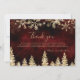 Tack gäst för att ni kom till er vinterbäderland bröllop med guld-glitter-gnistor snö och snöflingor tack för ert kort, med guld blanka gräs träd-skog på en elegant vinterröd burgundisk vattenfärgsbakgrund.