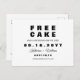 En modern och rolig "FRI TÅRTA OCH ETT BRÖLLOP bröllop spara datumvykort PÅ FÖR SIDAN" som knäcker upp dina gäster. Den moderna typografin för designsärdrag med en antyda av skrivar stilsorten i svart färg på en vitbakgrund. På den bakre sidan av vykortet specificerar designsärdragalternativen för mer inklusive utrymme för en returadress. Personifiera designen, genom att byta ut texten med ditt, specificerar.