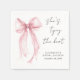 Eleganta servetter för din bröllopsfest med en elegant akvarell av en ljusröd coquettebåge, "Hon knyter knuten" i modern kalligrafi samt brudens namn och duschdatum i enkel bokstav.