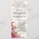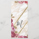 Chic, eleganten och den flickaktigt rodna rosan blommar med löv på fauxen utskrivavet guld och modern marmor för vit, bröllopsprogramkort. Denna klassiker och sofistikerade design är perfekta för trendiget, och stilfullt att gifta sig kopplar ihop. Personifiera med ditt egna meddelande på bekläda såväl som en skräddarsy monogram som är initial på baksidaen. All fototryckdesign.