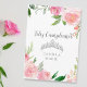 Denna vackra rosa blommigt Feliz Cumpleaños-kort har söt vattenfärgblommor och grönt löv ovanför en glatt silver tiara. Ett underbart feminin- och girofödelsedagskort för din tonåring flickas 15-årsdag. Vänliga och feminina peonier skapar ett sött gräns runt eleganten Quinceañera-budskap.