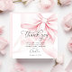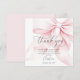 Säg tack med stil med detta eleganta rosa bröllopsfest tackkort. Med en mjuk akvarell rosa rosett är det perfekt för coquette, romantiska och minimalistiska teman. Personifiera med ditt hjärtliga meddelande för att visa din tacksamhet på ett chic, klassiskt sätt.