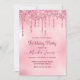 Den här chic eleganten rosa gnistra glitter droppar födelsedagsfest inbjudan är perfekt för alla åldrar med coola faux glitter dropping och rhinestones droppdesign. Anpassa den med din egen information med vackert monogram typsnitt.