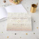 Fira din speciella dag med denna chic rosa guld glitter bröllop gästbok. Med en sofistikerad guld hjärta accent på en texturerad bakgrund med glittrande detaljer, är denna gästbok perfekt för eleganta bröllop. Anpassa med dina namn och bröllopsdatum för en vacker souvenir.