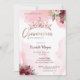 Elegant glitterkrona och blommor på rosa guld glitter ombre quinceañera festinbjudan.