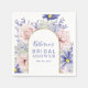 Dessa eleganta akvarellblommiga bröllopsdusch servetter har vackra sommarblommor i rosa och lila med en chic falsk guldglitterbåge och ditt namn och duschdatum för att anpassa i modern kalligrafi. Designad av Susan Coffey.