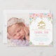 Chic Rosa Mint Blommigt Carousel 1:a födelsedagsfo Tack Kort