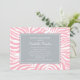 Modern och snyggt babyduschinbjudan innehåller en giftig zebra ränder-djurskrift i mönster och en färg-palett med rosa, grått och vitt.