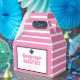Perfekt klassisk svart och rosa seersucker-randig hangover relief kit presentlåda som kan anpassas.