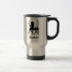 Anpassa genom att lägga till ditt namn till den här resemuggen för chic och snyggt med en silhuett av en kvinna från mode, som bär shock rosa högläkta skor med söta bovar, sitta vid en smakeup vanity och beundra hennes gigantiska reflektion i spegel.